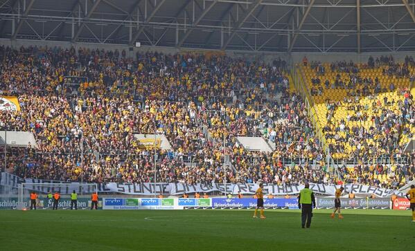 Стадион в Дрездене. Динамо Дрезден вылетело из 2 лиги. На баннере написано " Увас есть час, чтобы покинуть город". Может такое и для Шорти зафигачить?